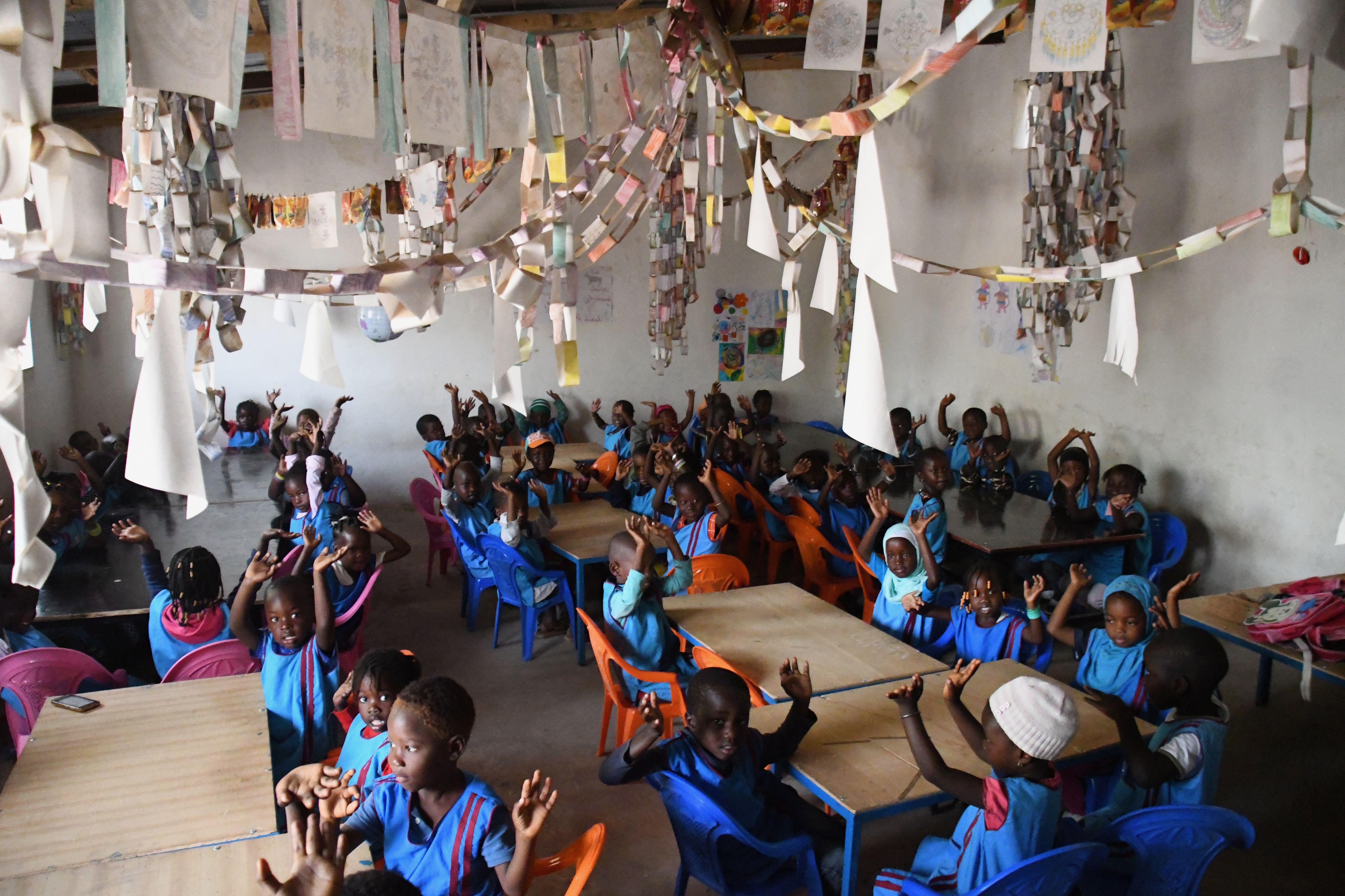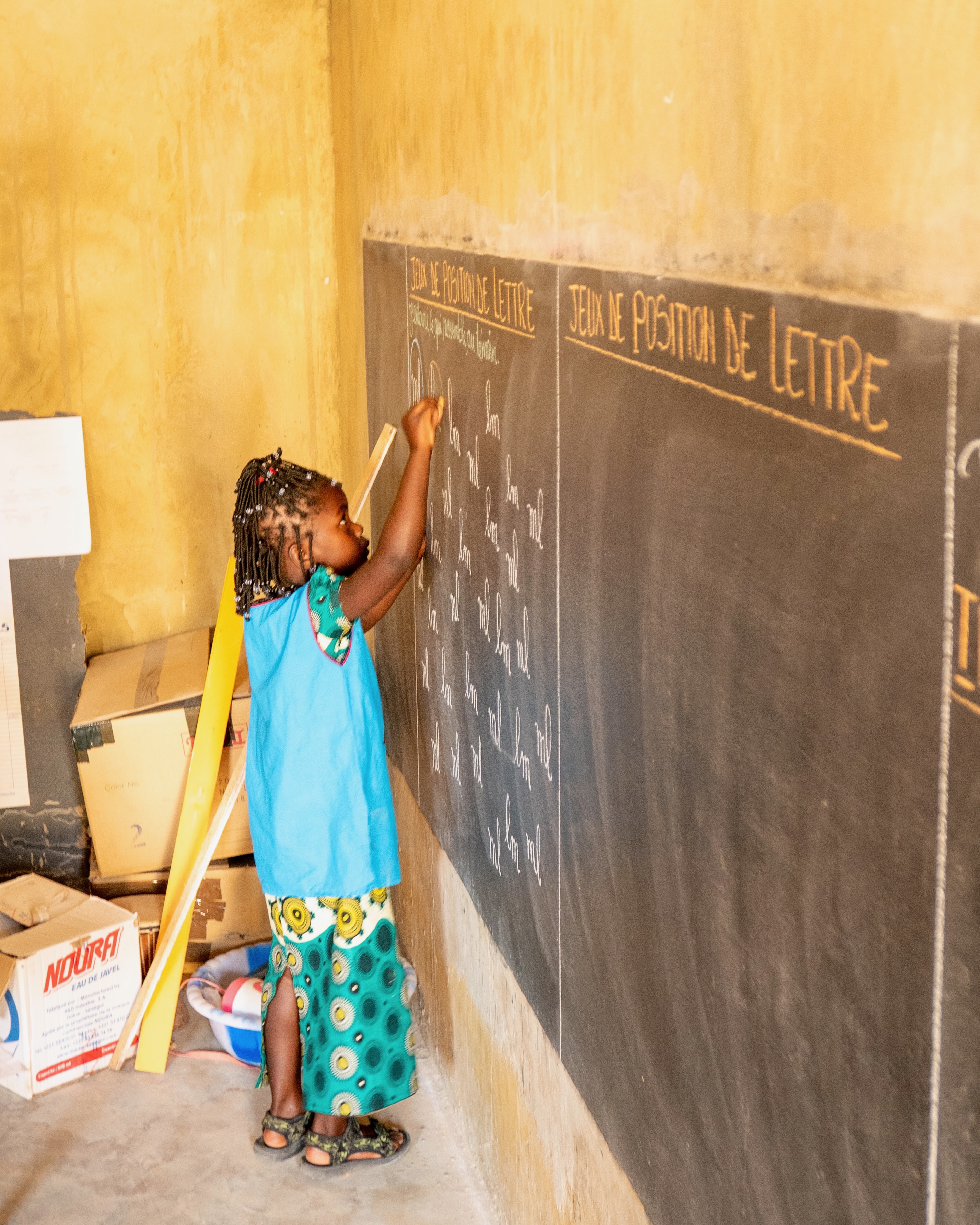 The community-run pre-school prepares children for entry into the local primary school. Most children only speak a local language at home and are taught first steps in French, personal hygiene and social skills. This enables them to focus their energies more effectively on learning when they enter primary school.