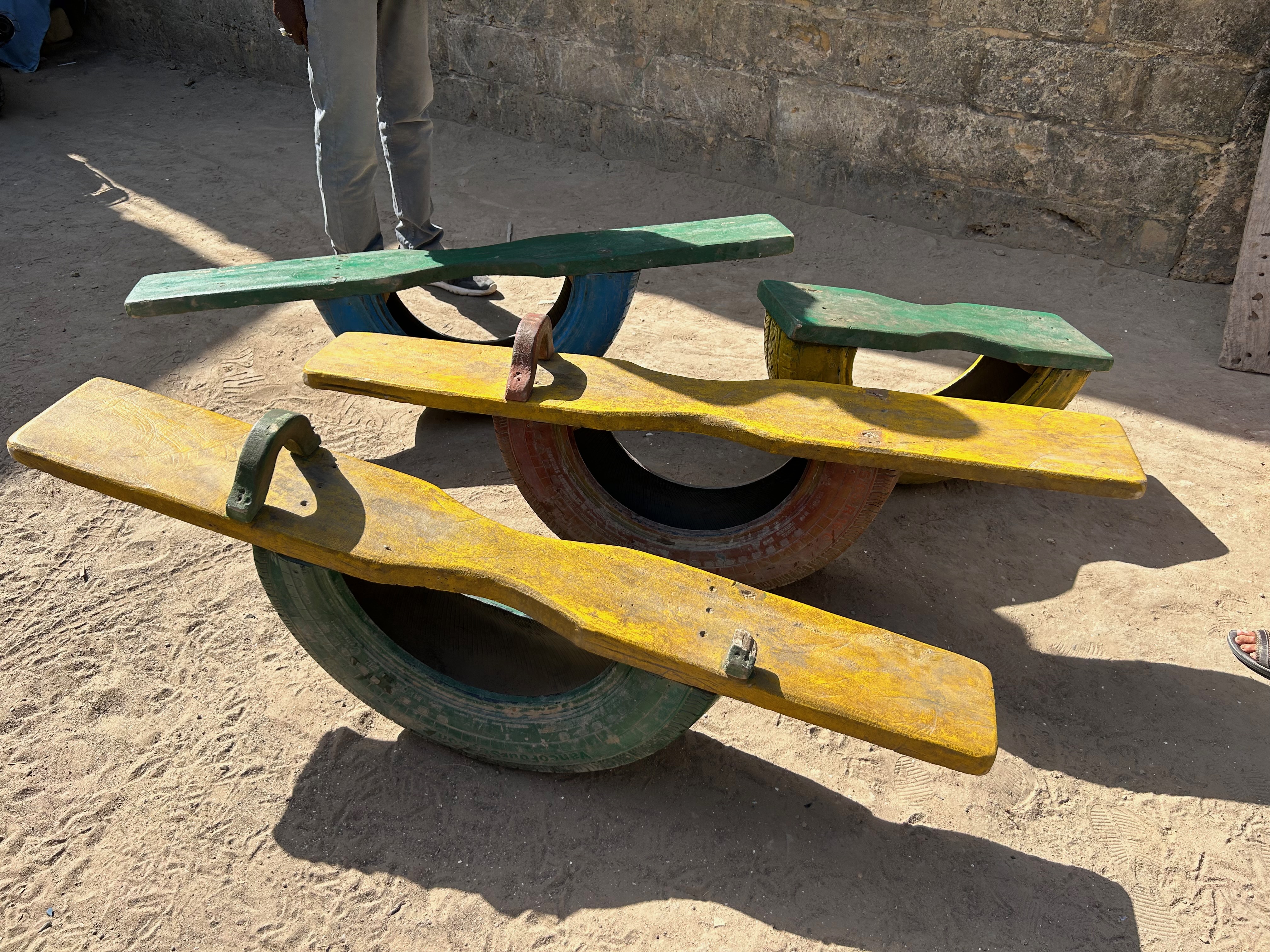 Another generous donation from a supporter celebrating her birthday enabled us to pay for play equipment, including some very popular and highly robust see-saws made from recycled wood and tyres. Very few things in Kafountine are used only once.