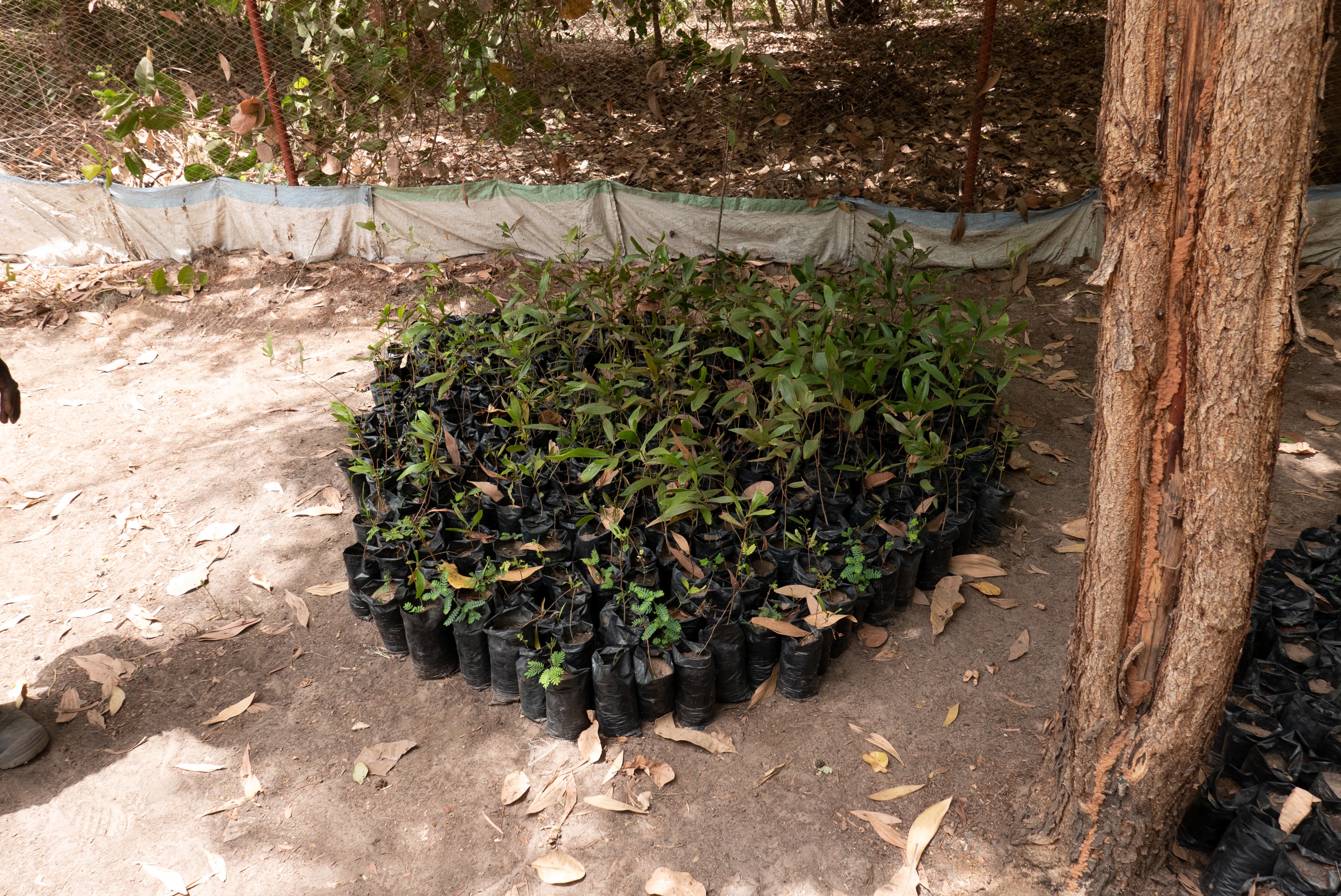 Our funding initially was to buy 700 reusable sachets in which seeds (which are collected from around existing trees) were planted. Under half the seedlings survived. The two problems were relying on enthusiastic but essentially unreliable volunteers for watering in the dry season and lack of protection from battering and drowning in the rainy season.